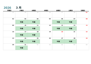 | 14:00-17:30 | 別宮 | 佐々木 | 島本 | ✕ | 青木 | ✕ |